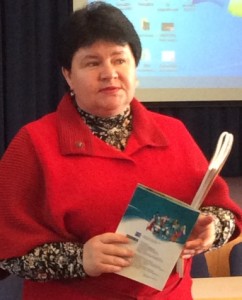 Старший викладач кафедри методики та психології дошкільної і початкової освіти ІППО КУ імені Бориса Грінченка Л.В.Кравчук презентувала учасникам заходу інтегрований курс «Культура добросусідства»: розповіла про мету курсу, його особливості й переваги, ознайомила зі структурою програми та тематичними лініями курсу. Було обговорено питання нормативно-правового, навчально-методичного забезпечення курсу, організації та проведення його апробації в початковій школі.