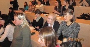 Семінар розпочався виступом викладача ІППО КУ імені Бориса Грінченка Олени Іванівни Харченко, яка визначила головні вокально-хорові навички та розповіла про методи їх формування на уроках музичного мистецтва. Олена Іванівна провела майстер-клас з питань формування в учнів правильної дикції та дихання під час виконання вокальних творів.